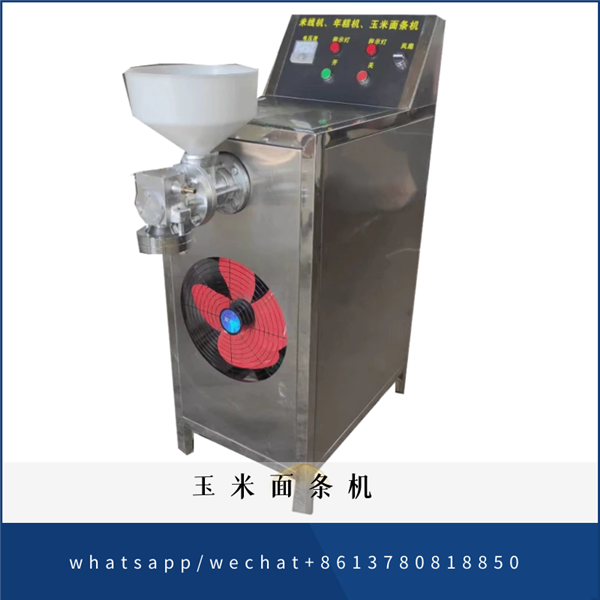 生产流程 : 脱皮玉米糁,玉米碴子,无需粉碎,自来水浸泡8-12小时,直接倒入料斗内即可生产熟面条,自动进料,自动控水,一次成型,粗细可调。
