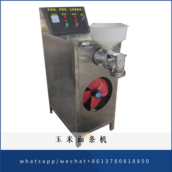 生产流程 : 脱皮玉米糁,玉米碴子,无需粉碎,自来水浸泡8-12小时,直接倒入料斗内即可生产熟面条,自动进料,自动控水,一次成型,粗细可调。