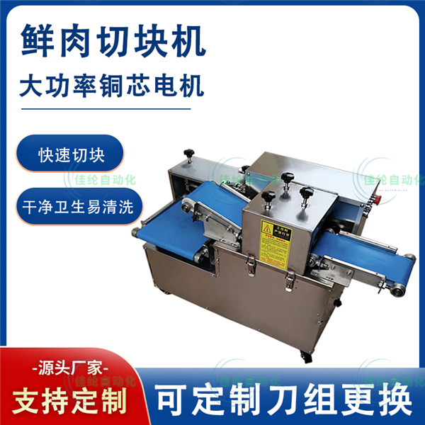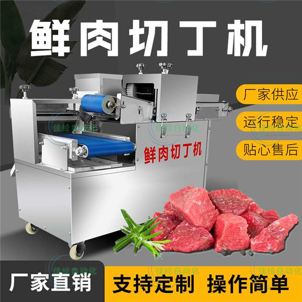 The whole machine is made of stainless steel with beautiful appearance. This dicing machine can cut fresh meat and semi-defrosted meat into cuboids and cubes of different sizes and shapes according to customer needs. The freshly baked tofu can be cut into cubes and cuboids of different sizes and shapes. This dicing machine can also be processed into strips, slices, silk shapes. The size of the cut is adjustable. Sliced meat, shredded, diced in the same size. Can be processed into 3 to 100 mm long pieces, d, bar, silk and other shapes.